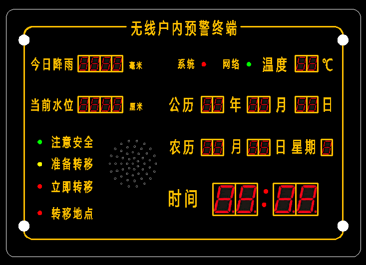 簡(jiǎn)易雨量報警器由一體化簡(jiǎn)易雨量計和家庭版入戶(hù)報警器兩部分組成,對降雨量進(jìn)行實(shí)時(shí)采集,以無(wú)線(xiàn)組網(wǎng)方式將數據傳輸給室內家庭版入戶(hù)報警器,達到設定閥值后以聲、光、數據顯示形式進(jìn)行預警。一體化簡(jiǎn)易雨量站同時(shí)具有GRPS通信功能,可將室外采集站工況、雨量數據和報警信息實(shí)時(shí)上傳平臺,管理人員可實(shí)時(shí)掌控預警設備運行狀況,并可通過(guò)平臺推送報警信息。